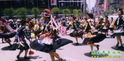 亞宜帶領(lǐng)眾人迎敵,戰(zhàn)斗了三天三夜,終因寡不敵眾向西撤退,得到貴州苗族支持,同官家周旋了一年。第二年四月八亞宜和貴州英雄亞努等人戰(zhàn)死在貴陽城。從那時起,“四月八”就成了青年男女聯(lián)歡節(jié)和祭祀英雄的紀(jì)念日。盡管歷代統(tǒng)治階級都以各種借口加以禁止,而具有反抗精神的苗族人民,只是改變了跳花的形式,仍然保留著聚會對歌內(nèi)容。一年一次,世代相傳,知道民國時期各地才先后中斷。后于一九八一年國家民委批示統(tǒng)一在京的苗族過“四月八”而才得到恢復(fù)。一九八六年在鳳凰上下落朝井鄉(xiāng)龍?zhí)梁哟澹?ldquo;四月八”的發(fā)源地舉行隆重聚會。這一天啟明星才掛在樹尖尖上的時候,湘黔邊境各地的男女青年,身著節(jié)日的盛裝,踏著路邊毛草上的露珠,唱著歌,吹著木葉,嘻嘻哈哈,迎著燦爛的朝露,從各條彎彎的山道上,向“跳花溝”涌來。十嶺八坡,山溝里外,龍河兩岸都站滿了人,熙熙攘攘,熱鬧非凡。會場的正中掛有寬六尺長七尺的淺紅大旗,繡有“四月八”三個大字,兩邊龍鳳圖案,莊嚴(yán)古樸,表示歷史悠久和不忘祖先功德。