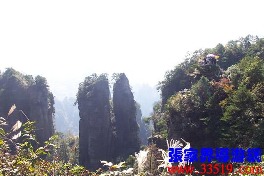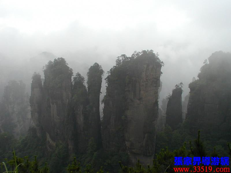 (山頂環(huán)覽線:五指峰、前花園、黑樅垴)朋友們!這里的每一座巖峰都是一件古老的藝術(shù)品,每一座巖峰都隱藏著大自然的無窮奧秘。面對如此壯美雄奇、氣象萬千的砂巖峰林風(fēng)光,幾年前,一位來自東北的女作家,就站在黃石寨(黃獅寨)上感嘆道:看了張家界的風(fēng)光,覺得真可以死了。接下來她又說,看了張家界的風(fēng)光,覺得更有理由好好活了。兩句話看起來前后矛盾,其實(shí)不然:前一句是說能見一到像張家界這樣奇美的風(fēng)光,此生足矣;后一句是說人生是如此美好,理應(yīng)更加珍愛生命。大家說對不對? “人生不到張家界,百歲何能叫老翁。”