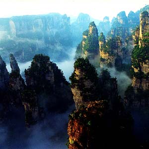 下 午: 游覽“峰林之王”之稱的天子山自然風(fēng)景區(qū):“誰人識得天子面,歸來不看天下山”,可見天子山風(fēng)光旖旎,景色秀美,景點(diǎn)眾多,游覽集自然于人文于一體的賀龍公園、御筆峰、仙女獻(xiàn)花、西海石林、石船出海等,可登上天子山最高點(diǎn)天子閣,遠(yuǎn)眺天子山全景。步行2小時下山(可乘天子山索道下山,67元/人)到達(dá)十里畫廊風(fēng)景區(qū):可游覽到:張家界十大絕景之一的采藥老人、三姐妹峰、黃昏戀、金雞報曉、夫妻抱子、天狗望月等景點(diǎn)(可乘觀光小火車游覽全程,38元/人)。