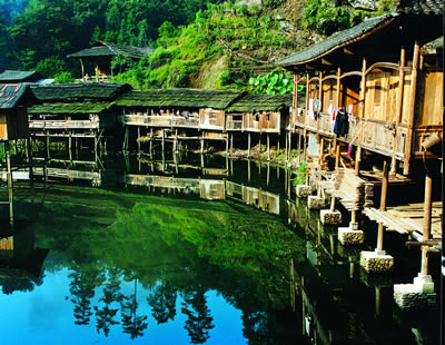 交通提示:從芙蓉鎮(zhèn)碼頭出發(fā),登上機(jī)動(dòng)船,經(jīng)過(guò)約三個(gè)小時(shí)的行程,航道越來(lái)越窄,終停泊在一個(gè)小渡口。沿著碼頭拾級(jí)而上,不遠(yuǎn)便可登上開(kāi)往小溪的班車(chē)。