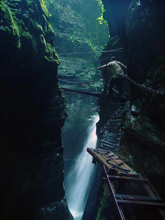 坐龍峽擁有中國第一條特種游道。所有游道均建于峽谷深處,依山取勢,既經(jīng)細心雕琢聽卻又渾然天成。粗樸的板栗木棧道,可以讓你零距離的親近那一潭碧幽、聽聞山泉叮咚;精巧的跳墩,可以讓你媳戲流泉、觸感溪瀑;原質的石坎道,讓你不得不調動全部的身心能量悉心攀援、感悟峽谷;有驚無險的鐵梯,讓你伴著腳下轟鳴的溪水,在驚怵中體味一份快慰。 出口出的土家山寨,保留了古樸獨特的生活習俗。一塊臘肉就一口醇香的“苞谷燒”會讓你洗去所有的疲憊,在輕松中憨厚的主人向你講述過去強人出沒的故事......