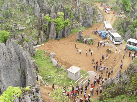 登上洛塔,只見連山綿谷,萬石如林,一塊塊青灰色的大石頭競高競秀,競美競奇,綿亙縱橫,層疊交錯(cuò),造型奇特,塔狀、蓮臺狀、羅漢狀、錐狀、刀狀、箭簇狀、帷幕狀等林立薈萃,像一個(gè)個(gè)神奇的迷宮,組成洛塔地質(zhì)公園的旖旎景觀。有的玲瓏斫剔,若女繡工鐫;有的嶙峋怪異,如鬼斧神鑿;有的崢嶸巉峻,似水墨丹青;有的嵯峨兀立,藤蔓纏繞,更像一株株挺拔的古樹。高的、矮的、大的,細(xì)的。粗、瘦、皺、滑,各具特色,如人之面目相具而無一相似者,在綠樹紅花間亮麗起一道道迷人的風(fēng)景。洛塔石林遍及整個(gè)山界,較集中的有楠竹車水坪石林、梭洛趙家灣石林、八仙洞石林及公路沿線的銀河塔石林,僅車水坪一帶的石林面積就達(dá)1000多畝。無論其規(guī)模面積,造型及組合情況,洛塔石林都可與云南石林媲美。