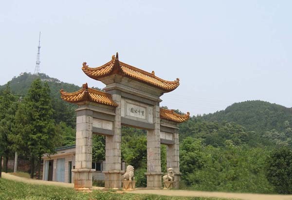 進入牌坊后,沿著水泥盤山公路可達公園景區(qū)