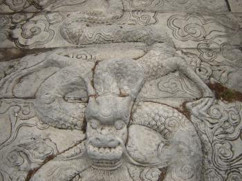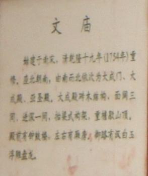 廟前面有學(xué)宮坪,亦名學(xué)坪,坪南端有大明壁。廟宇紅墻黃瓦,氣勢宏偉。正門曰奎星門,前院左右各植檜樹,常年翠綠,散發(fā)幽香??情T內(nèi)有月形泮池,池周護(hù)以石欄。泮池附近有石坊三座,正南石坊匾額鐫有“斯文在茲”四字,東西兩坊貫通街衢。通過石坊便是大成門。進(jìn)門左右是飛檐綠瓦的鐘鼓亭。大成門通向大成殿,有石鋪甬道直抵大殿臺基。臺高一米,全系石塊疊成。臺階分左右兩道,中有石雕盤龍,綴以云海波濤,栩栩如生,躍然石上。大成殿為歇山式重檐結(jié)構(gòu),周圍有16根圓石柱,內(nèi)外枋、檁、藻井、斗拱、扇梧均五彩施繪,黃瓦飛檐,蔚為壯觀。殿后有亞圣殿,與大成門、奎星門前后襯應(yīng),更顯出大成殿主體的雄偉。