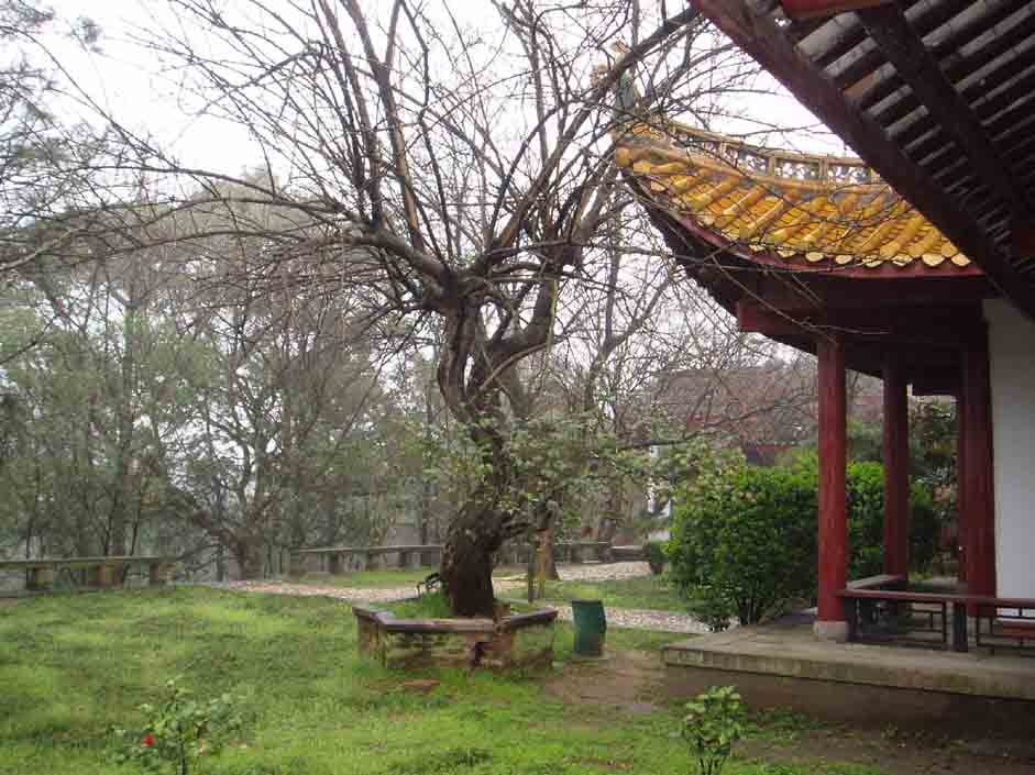 酒香亭在君山中部的酒香山峰上,掩映在翠竹藤蔓之中。入亭小憩,不僅鳥語花香,更有一股隱隱酒香撲鼻。原來此山中生長(zhǎng)著一種開黃色小花的青藤,花香帶著酒味,這種藤叫酒泉藤,傳說用藤上小花釀的酒,喝了長(zhǎng)生不老,可以成仙,這事傳到漢武帝耳里,他便派使臣欒巴率領(lǐng)男女?dāng)?shù)十人趕來君山,取回了仙酒。酒到京城,卻被當(dāng)時(shí)能言善辯的臣子?xùn)|方朔偷飲了。漢武帝得知,“龍顏”大怒,要將東方朔斬首。東方朔不慌不忙地奏道:“如果喝了此酒真會(huì)長(zhǎng)生不老,可以成仙,皇上就殺我不死,如果臣被殺死了,此酒皇上喝了也不會(huì)長(zhǎng)生不老。”武帝無言以對(duì),便赦免了他。這事傳到了君山,人們便在酒香山修了酒香亭,以為紀(jì)念。如今的此亭,為一九八一年恢復(fù),占地近三十二平方米,高六米余,為四柱方形、磚石木混合結(jié)構(gòu),古香古色,富有詩意。