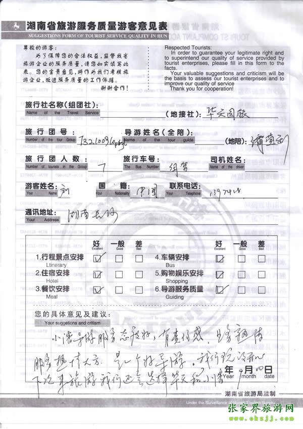 - 游客夏先生為表?yè)P(yáng)導(dǎo)游李姣姣寫(xiě)來(lái)表?yè)P(yáng)信致我張家界... [14811]