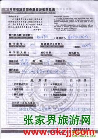 2010年4月9日重慶張先生一行10人張家界鳳凰旅游質量反饋