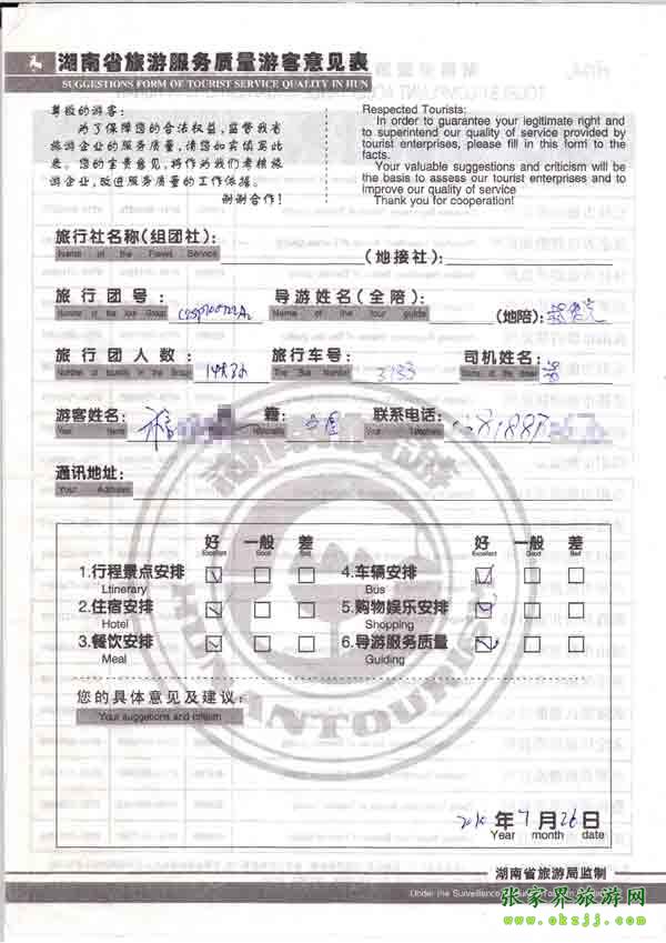 2010年7月26日程先生旅游質(zhì)量反饋