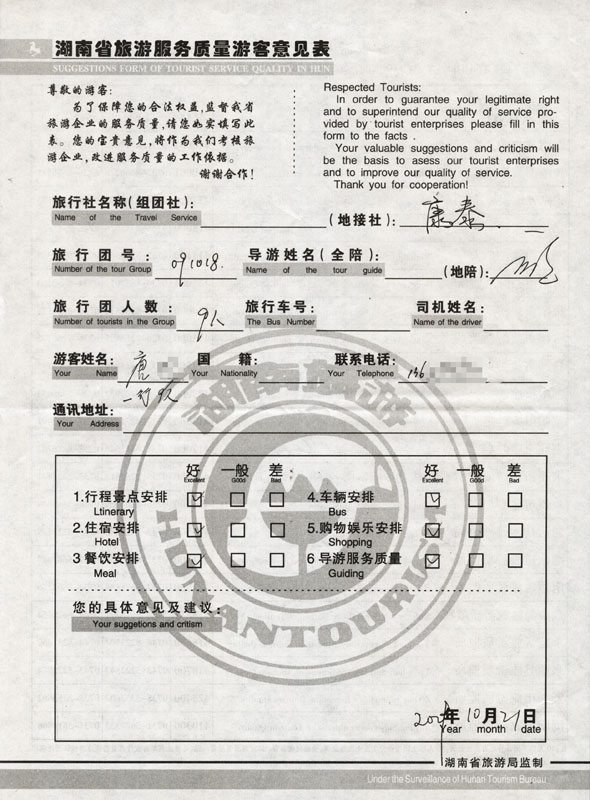 - 2011年10月5日黃先生一行17人旅游質(zhì)量反饋 [7847]